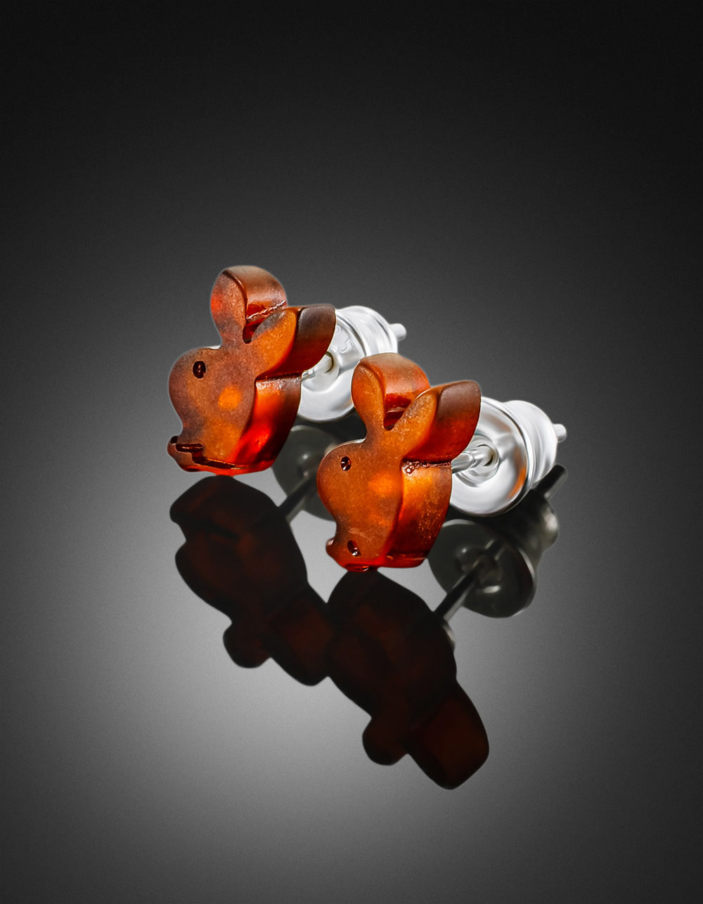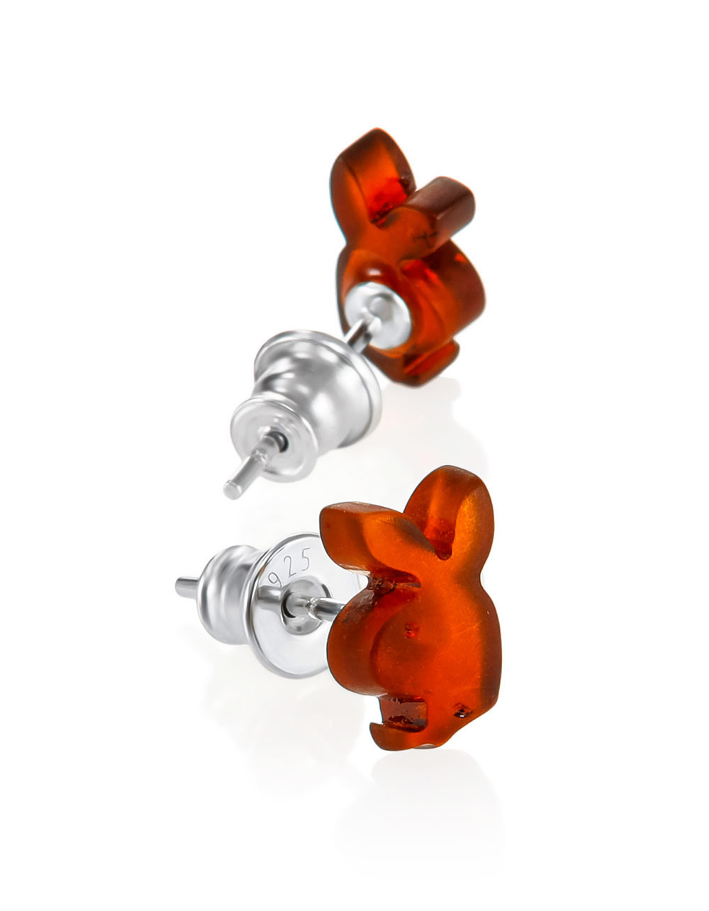 Забавные серьги-гвоздики «Зайка Playboy» из натурального янтаря
