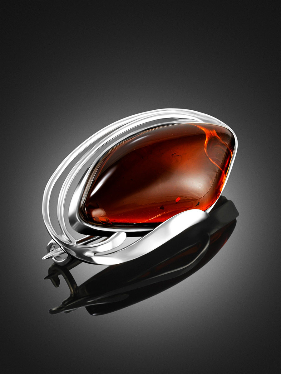 Женственная брошь «Маньяна» из цельного янтаря коньячного цвета