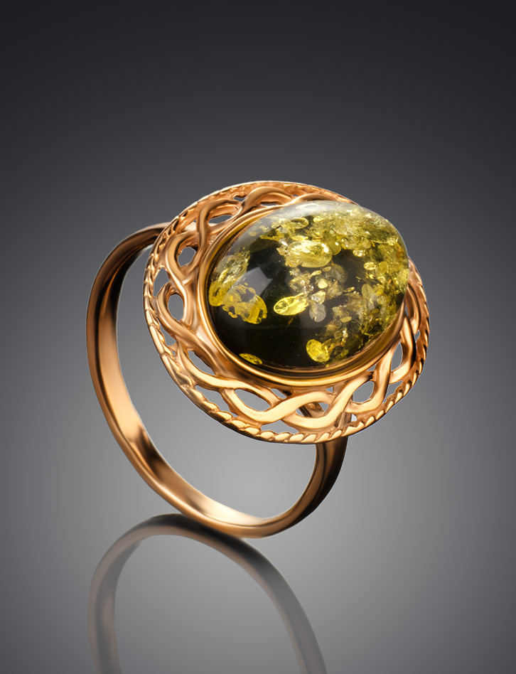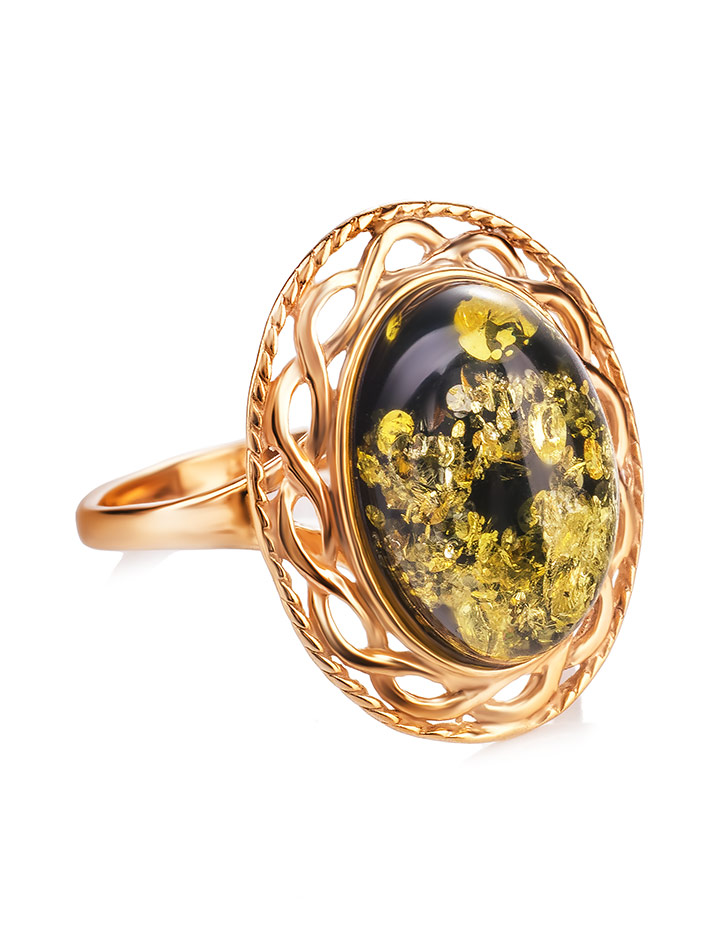 Женственное кольцо из зелёного янтаря «Вавилон»