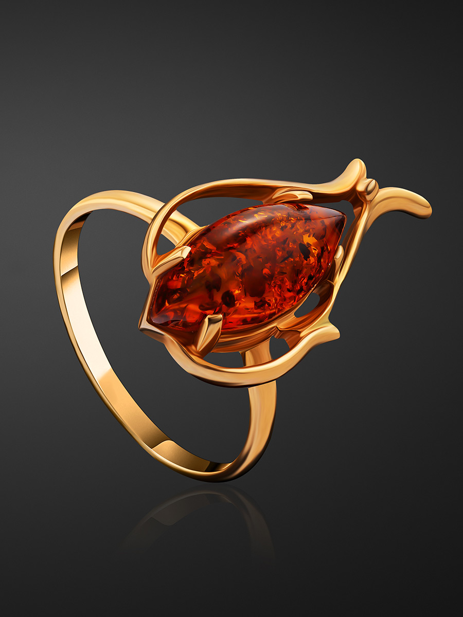 Женственное позолоченное кольцо из янтаря «Тюльпан»