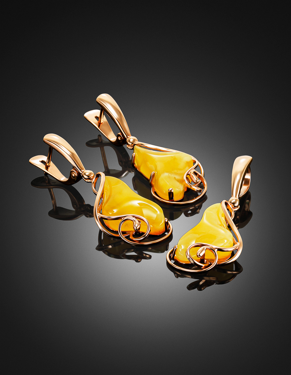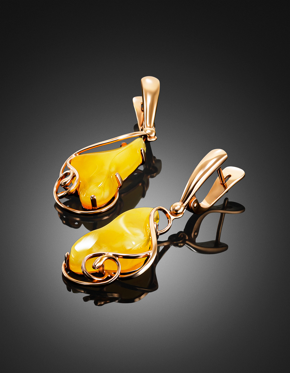 Женственные серьги с натуральным нежно-медовым янтарём «Риальто»