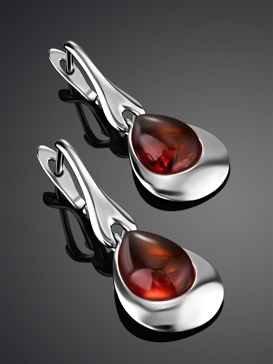 Женственные серьги со вставками из натурального янтаря вишнёвого цвета «Джульетта»