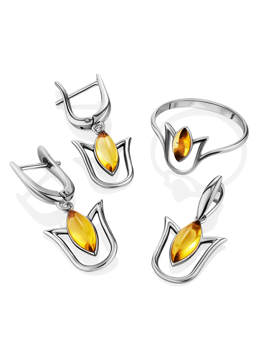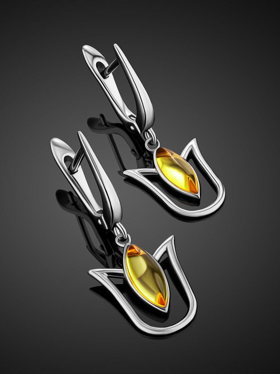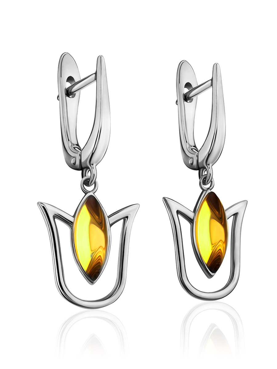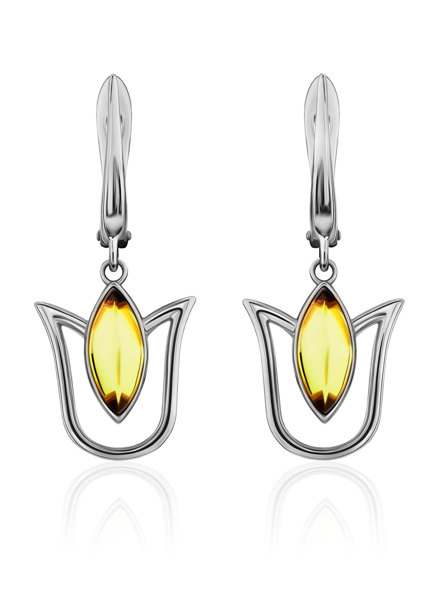 Женственные серьги «Тюльпан» с лимонным янтарём