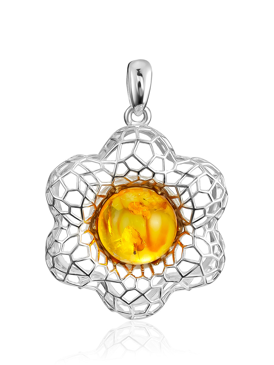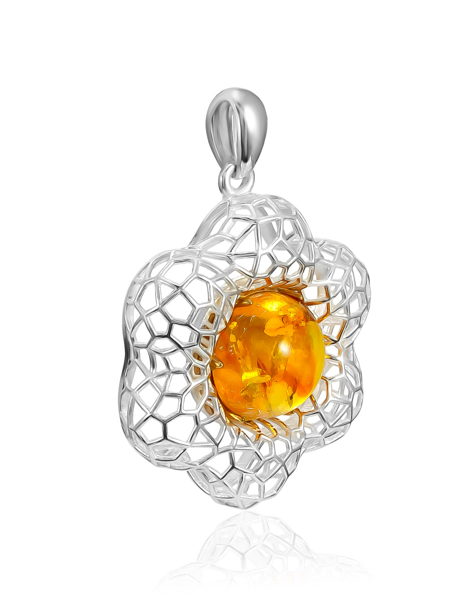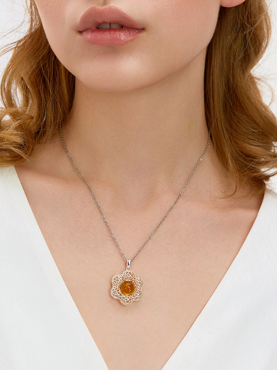 Женственный кулон с натуральным золотистым янтарём «Физалис»
