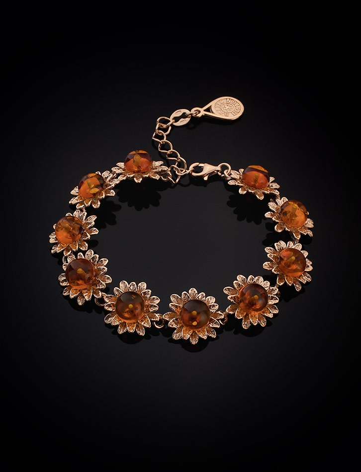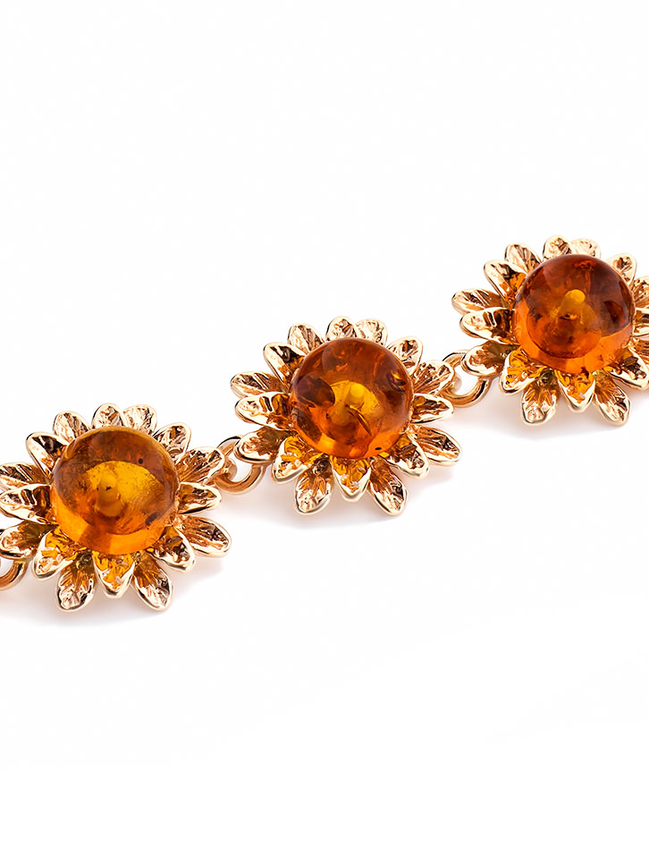 Женственный позолоченный браслет с натуральным цельным янтарём «Астра»
