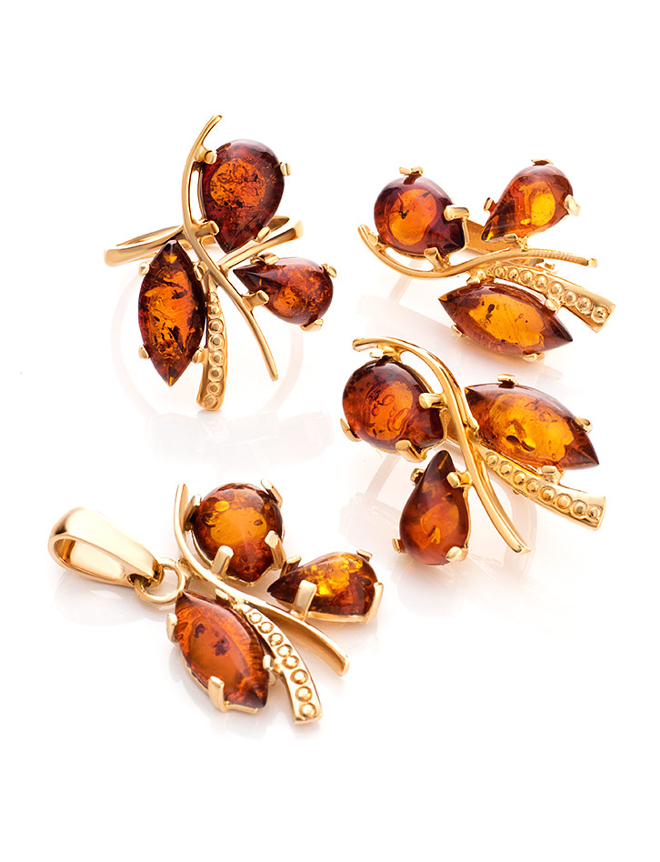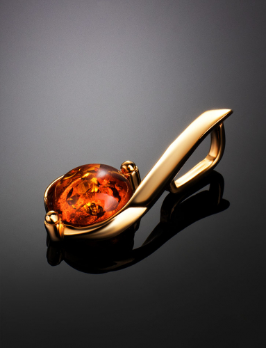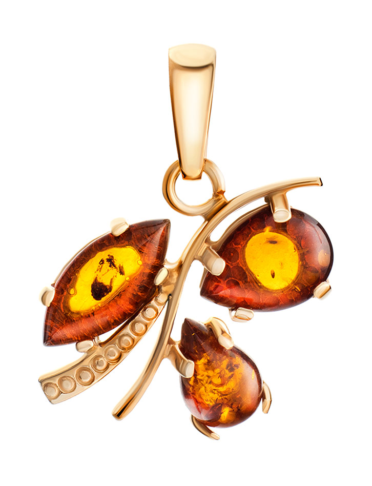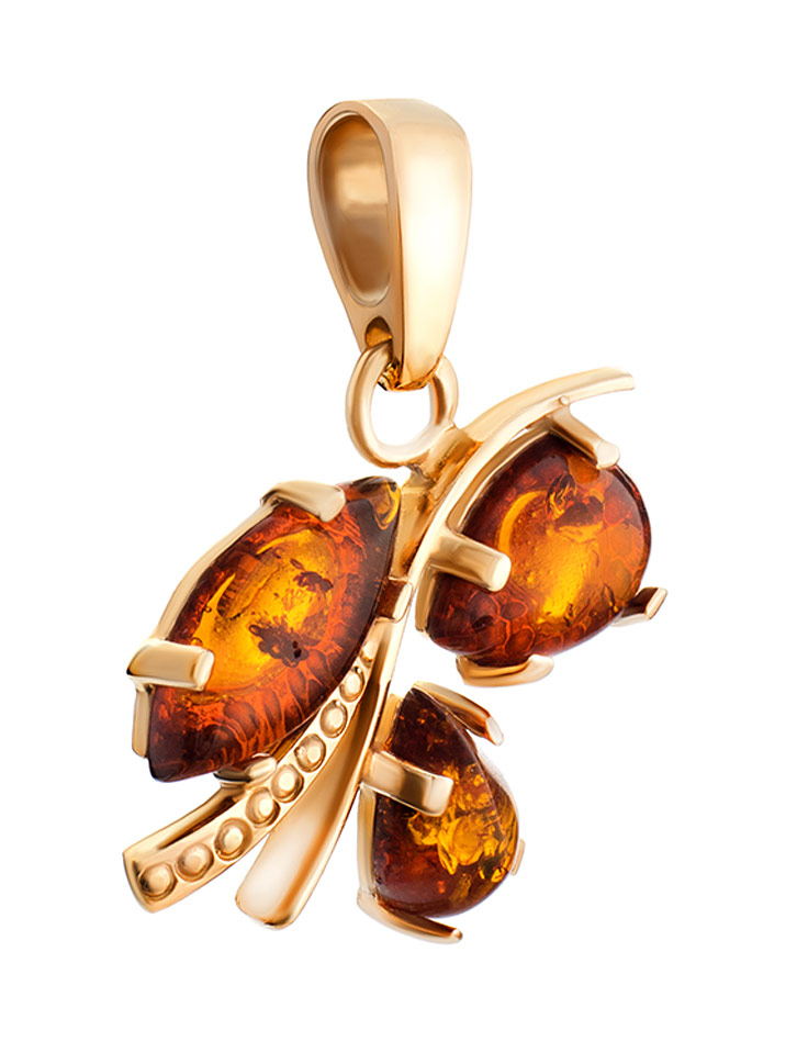 Золоченный кулон, украшенный натуральным коньячным янтарём «Магнолия»
