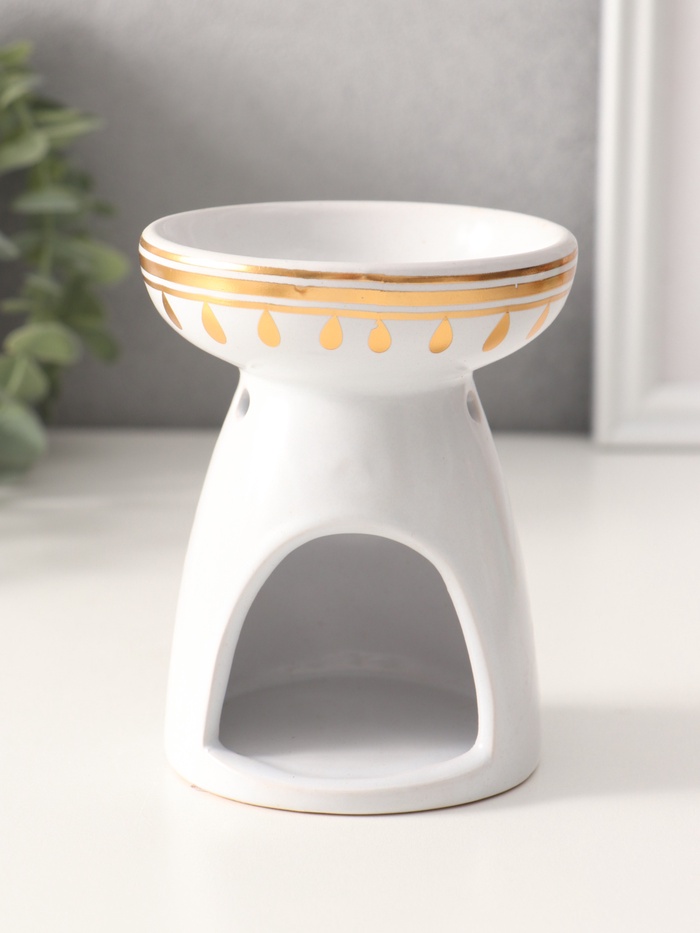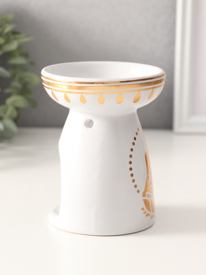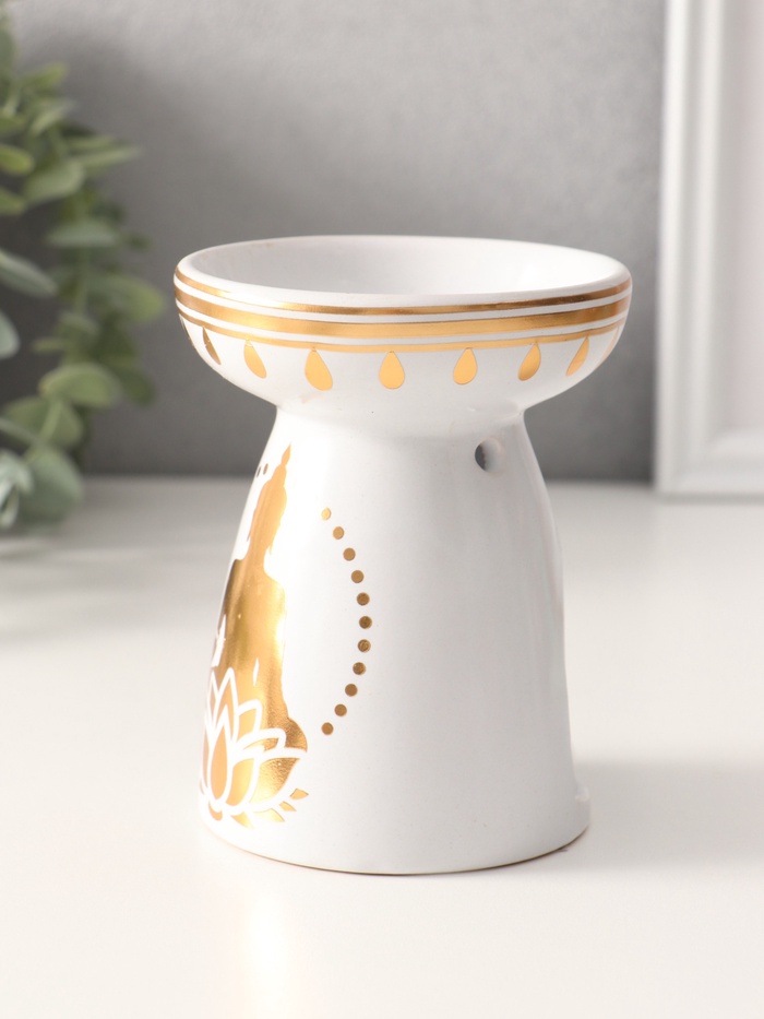 Аромалампа для эфирных масел «Будда и лотос», керамика, белая с золотом, 9.3×9.3×11.8 см
