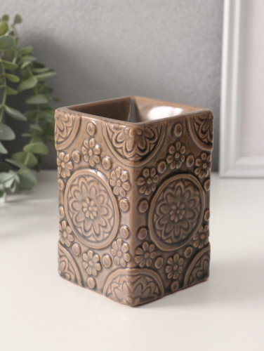 Аромалампа для эфирных масел «Цветочные узоры», керамика, т. бежевая, 7.7×7.7×12 см