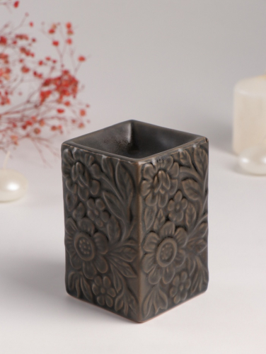 Аромалампа для эфирных масел «Цветочный букет», керамика, т. оливковая, 7.7×7.7×12 см