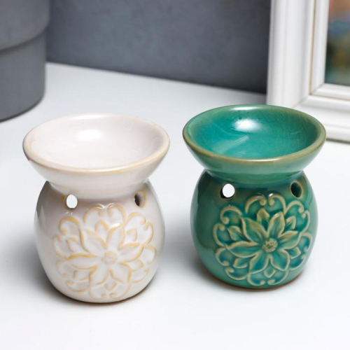 Аромалампа для эфирных масел «Цветок и завитки», керамика, 7.5×7×7 см, МИКС
