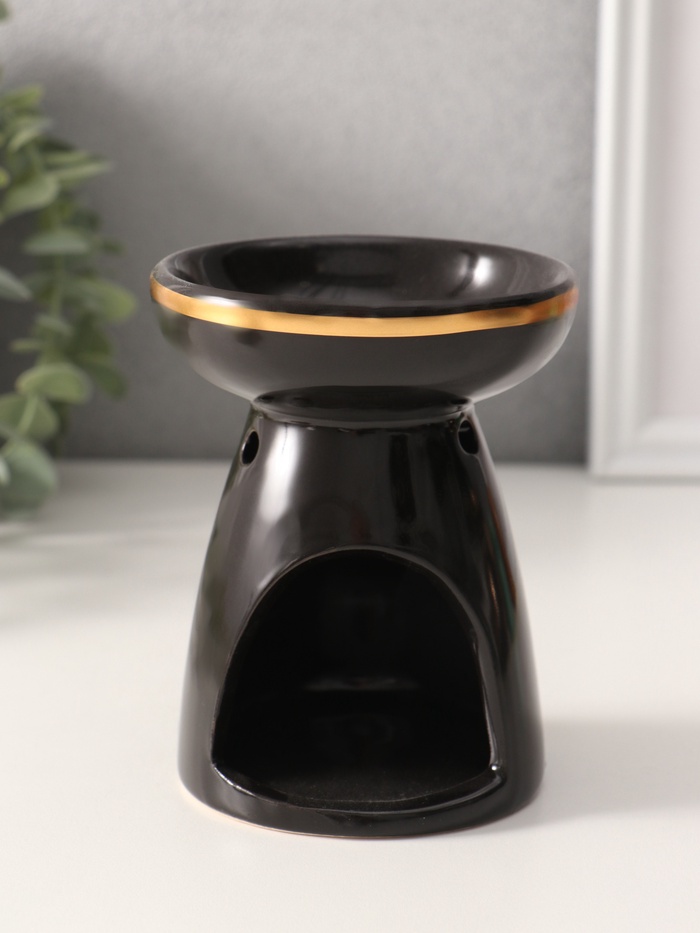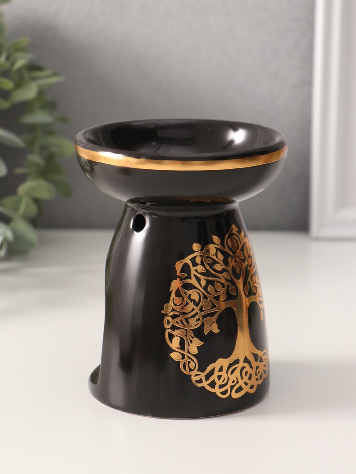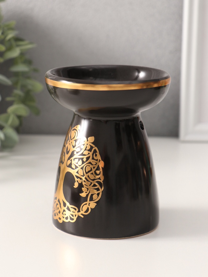 Аромалампа для эфирных масел «Древо жизни», керамика, чёрная с золотом, 9.3×9.3×11.8 см