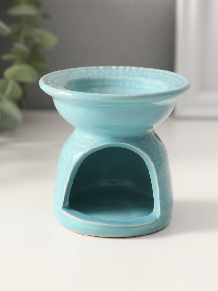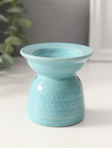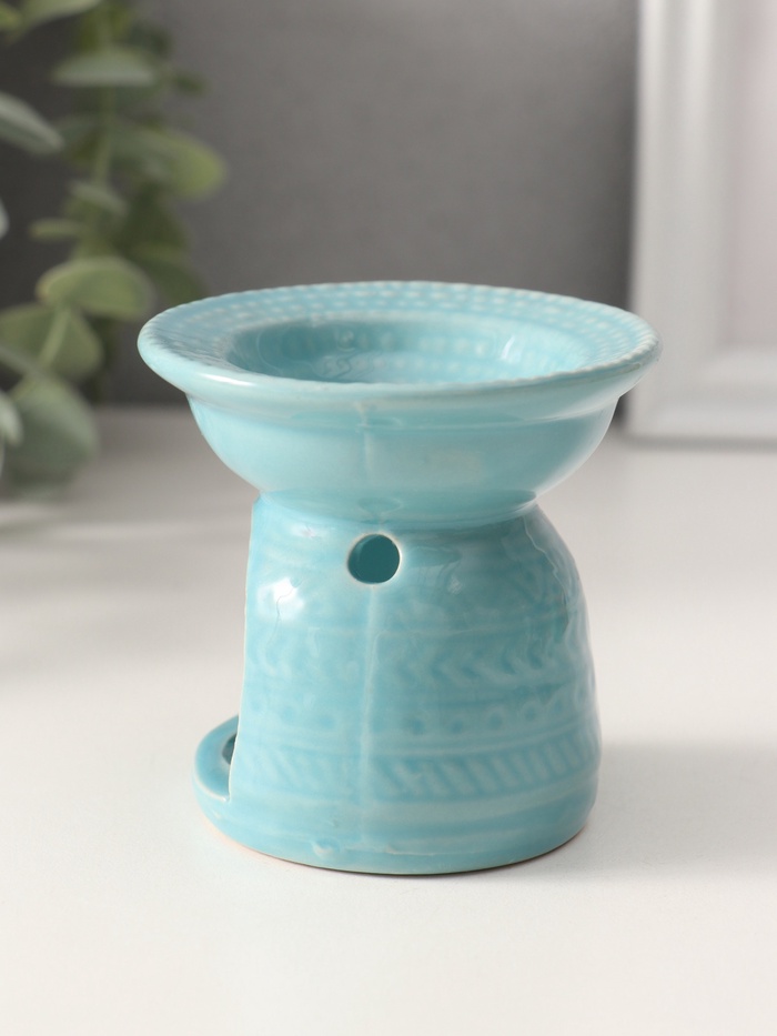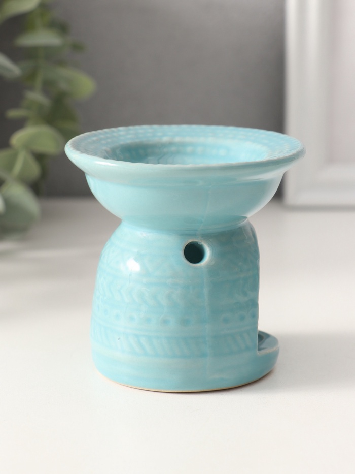 Аромалампа для эфирных масел «Геометрические узоры», керамика, нежно-голубая, 7.5×7.5×6.5 см