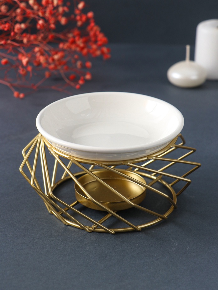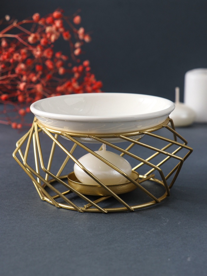 Аромалампа для эфирных масел «Геометрия плетение», металл, керамика, золотистая, 7.5×13×13 см