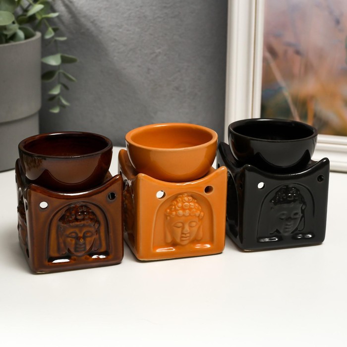 Аромалампа для эфирных масел «Голова Будды на кубе», керамика, 8.4×6.8×6.8 см, МИКС