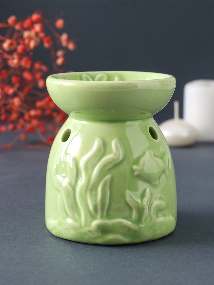 Аромалампа для эфирных масел «Подводный мир», керамика, зелёная, 7.2×7.2×8.9 см