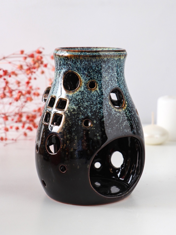 Для производства аромаламп используют более дешёвую глину, в которой допустимы инородные вкрапления - в следствии чего на изделии могут быть чёрные точки. При обжиге изделия могут образовываться микротрещины, что тоже не является браком.