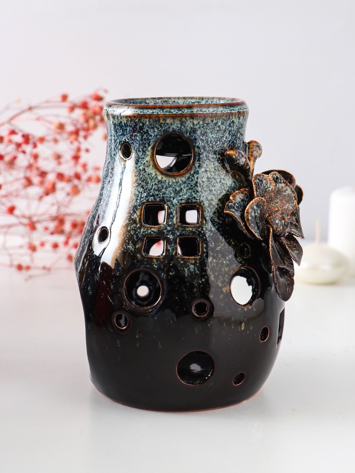 Аромалампа для эфирных масел «Полевой цветок», керамика, коричневая, 9×9.5×13.5 см