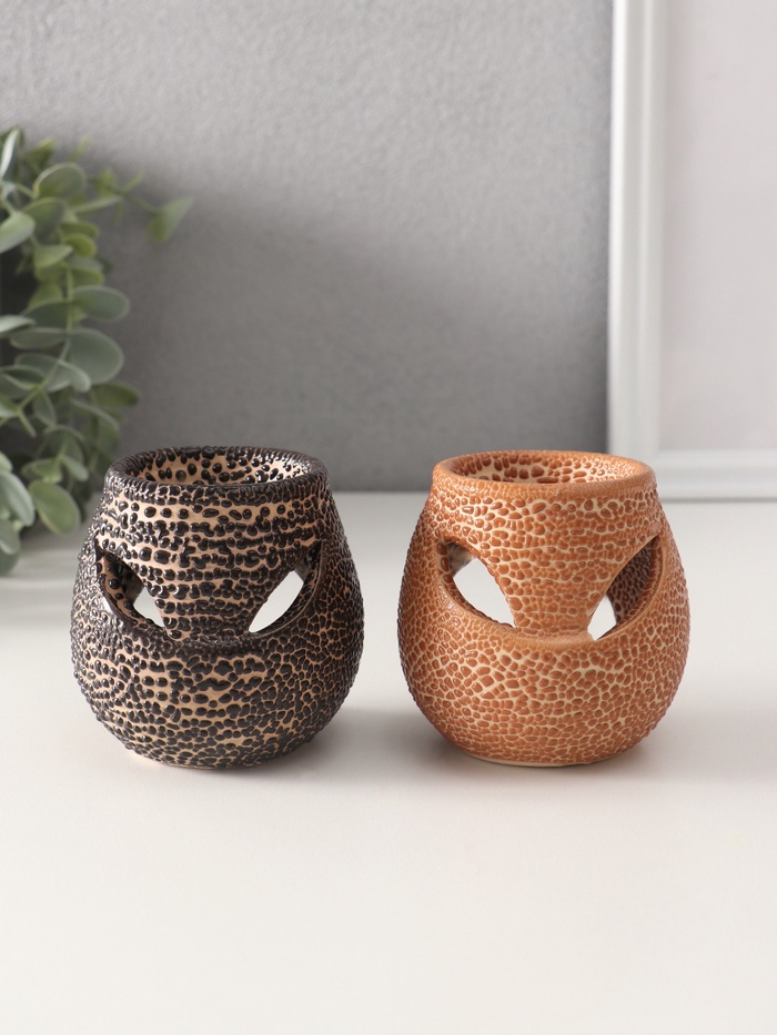 Для производства аромаламп используют более дешёвую глину, в которой допустимы инородные вкрапления - в следствии чего на изделии могут быть чёрные точки. При обжиге изделия могут образовываться микротрещины, что тоже не является браком.