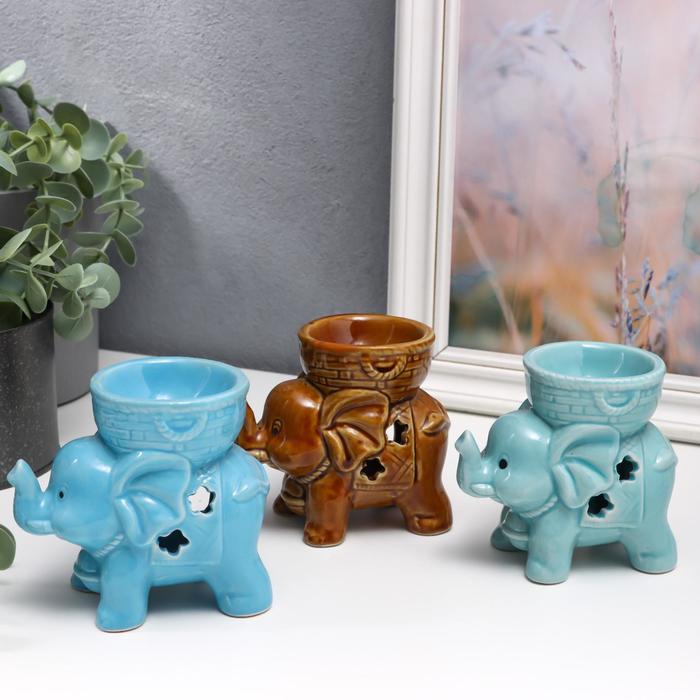 Аромалампа для эфирных масел «Слоненок», керамика, глянец, 9×9.5×6 см, МИКС