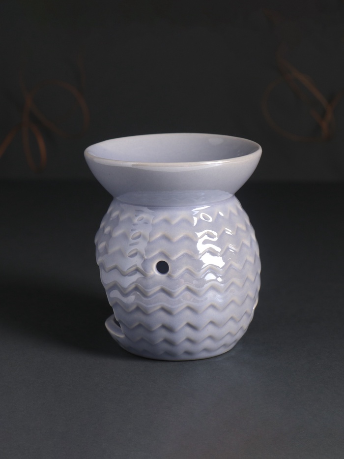 Аромалампа «Волна зигзагами» поможет вам создать уютную и расслабляющую атмосферу в вашем доме. Её оригинальный дизайн и мягкий голубой перламутровый цвет привнесут в ваш интерьер нотку свежести и уюта. Керамика — это прочный и долговечный материал, который сохранит первоначальный вид аромалампы на долгие годы.