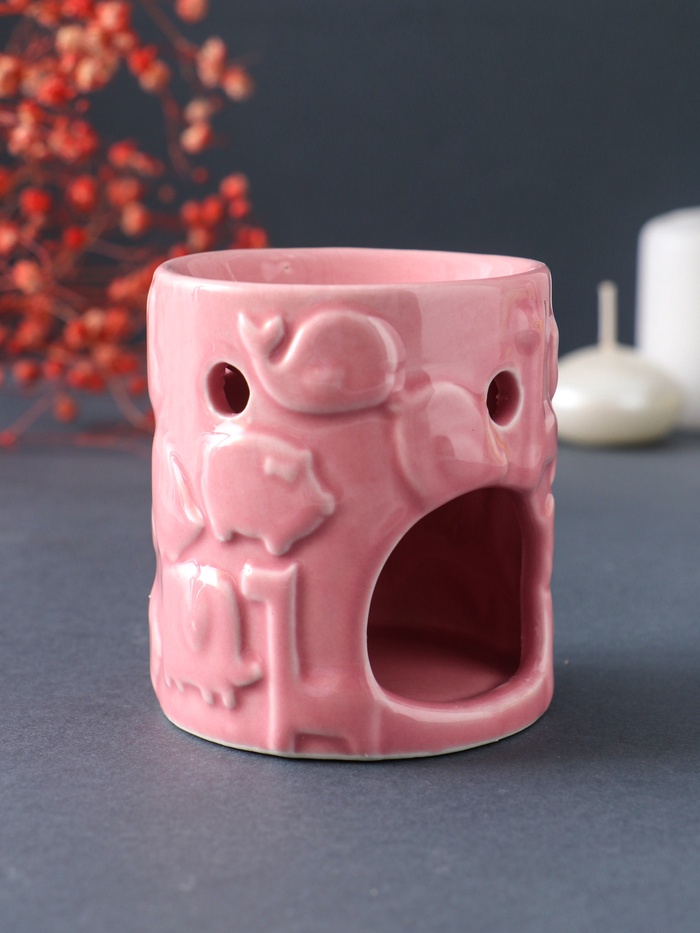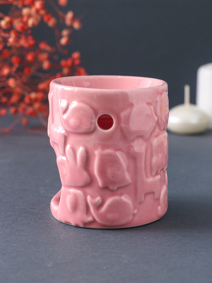 Аромалампа для эфирных масел «Зверята», керамика, розовая, 6.7×6.7×7.5 см