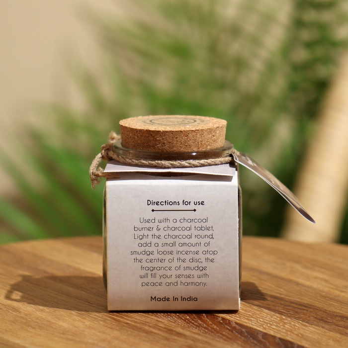 Используйте подставку или чашу для благовоний (приобретается отдельно), положите в центре уголь для благовоний и поджигайте примерно 20 секунд (дождитесь, когда уголь начнёт тлеть). Насыпьте вокруг тлеющего угля небольшое количество ароматических трав и наслаждайтесь ароматом.