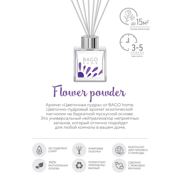 Диффузор ароматический цветочная пудра BAGO home 45 мл
