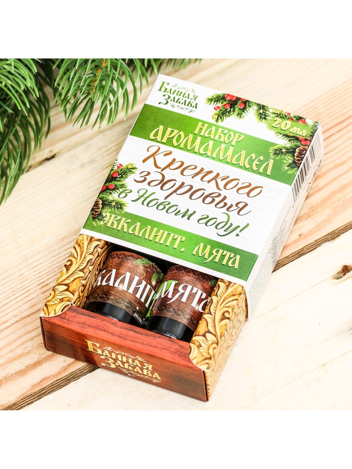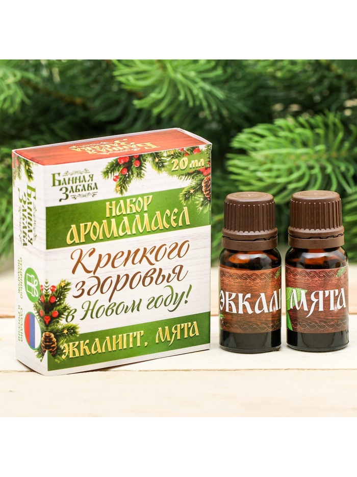 Новогодний набор эфирных масел «Крепкого здоровья в новом году!», эвкалипт, мята, 2 шт. по 10 мл