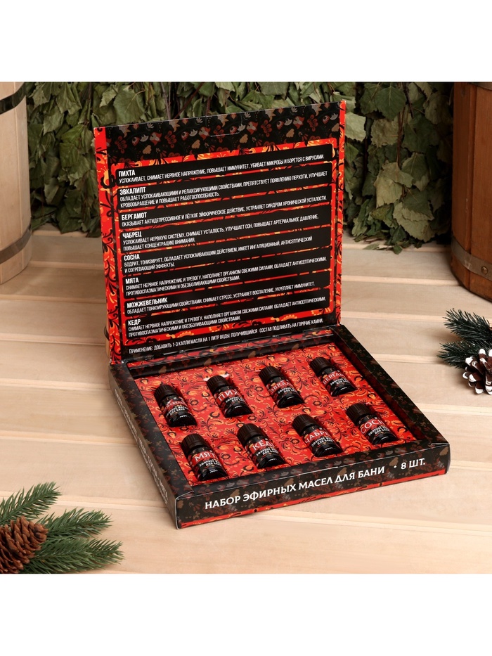 Аромат: Эвкалипт, Бергамот, Сосна, Кедр, Тимьян (чабрец), Можжевельник, Пихта, Мята