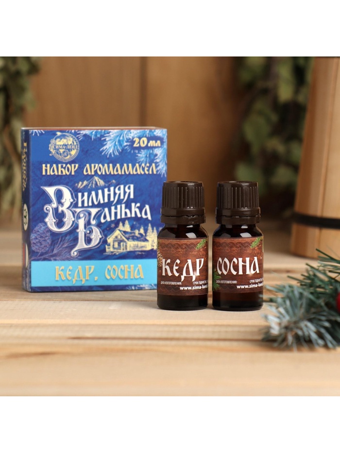 Новогодний набор эфирных масел «Зимняя банька!», кедр, сосна, 2 шт. по 10 мл