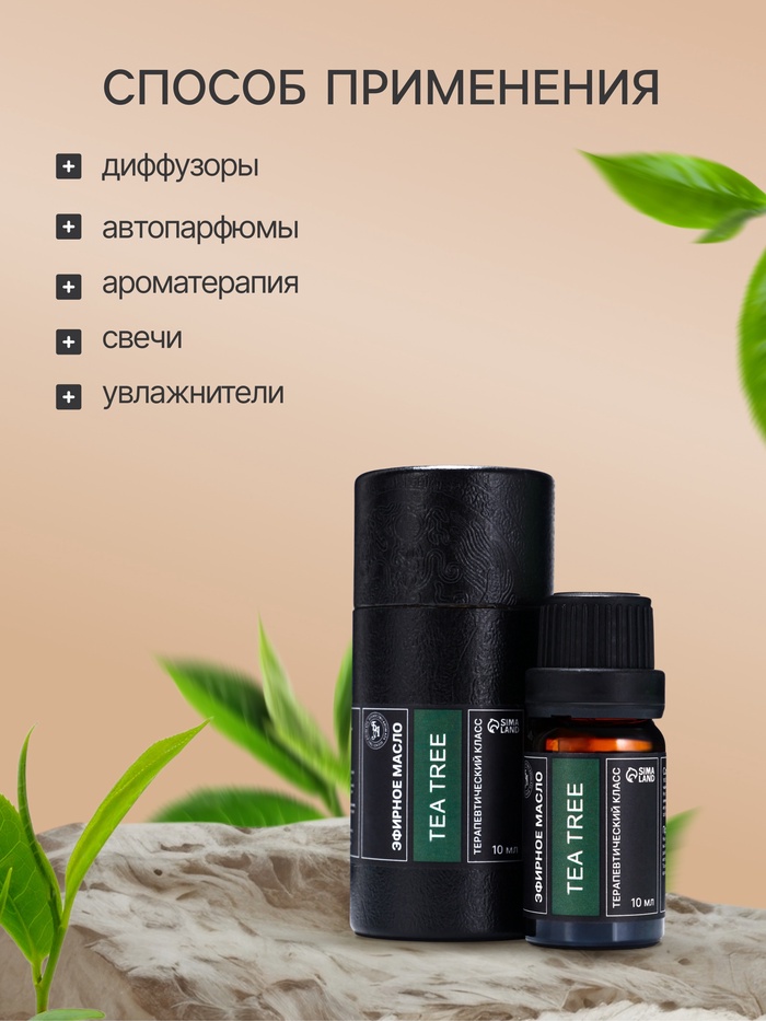 Снятие стресса и тревоги: Чайное дерево помогает справиться с напряжением и усталостью, способствует расслаблению и улучшению психоэмоционального состояния. Его освежающий и успокаивающий аромат поможет вам расслабиться после долгого дня и восстановить силы.
