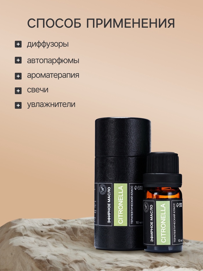 Защита от насекомых: Цитронелла известна своими природными репеллентными свойствами, эффективно отпугивая насекомых, особенно в летнее время. Масло поможет создать в вашем доме уютную атмосферу без надоедливых комаров.
