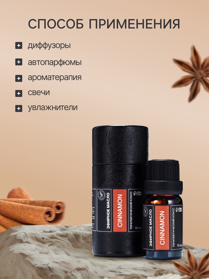 Эфирное масло "Корица" — это аромат, который приносит тепло, уют и гармонию в ваш дом. Оно создаст атмосферу вдохновения и расслабления, становясь незаменимым спутником в вашем уходе за собой и создании уюта.