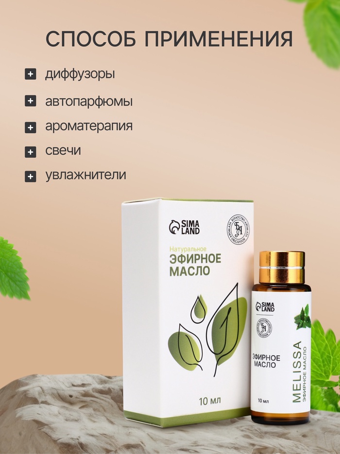 * Аромат трав и свежести: Запах мелиссы способен мгновенно перенести вас в сад, полный зелени и расслабления. Эфирное масло помогает освободиться от стрессов и напряжения, создавая атмосферу уюта и спокойствия.