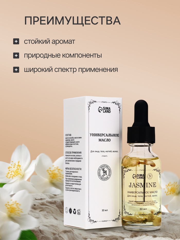 Универсальное масло с ароматом жасмина 30 мл — нежный уход для лица, тела, волос и ногтей