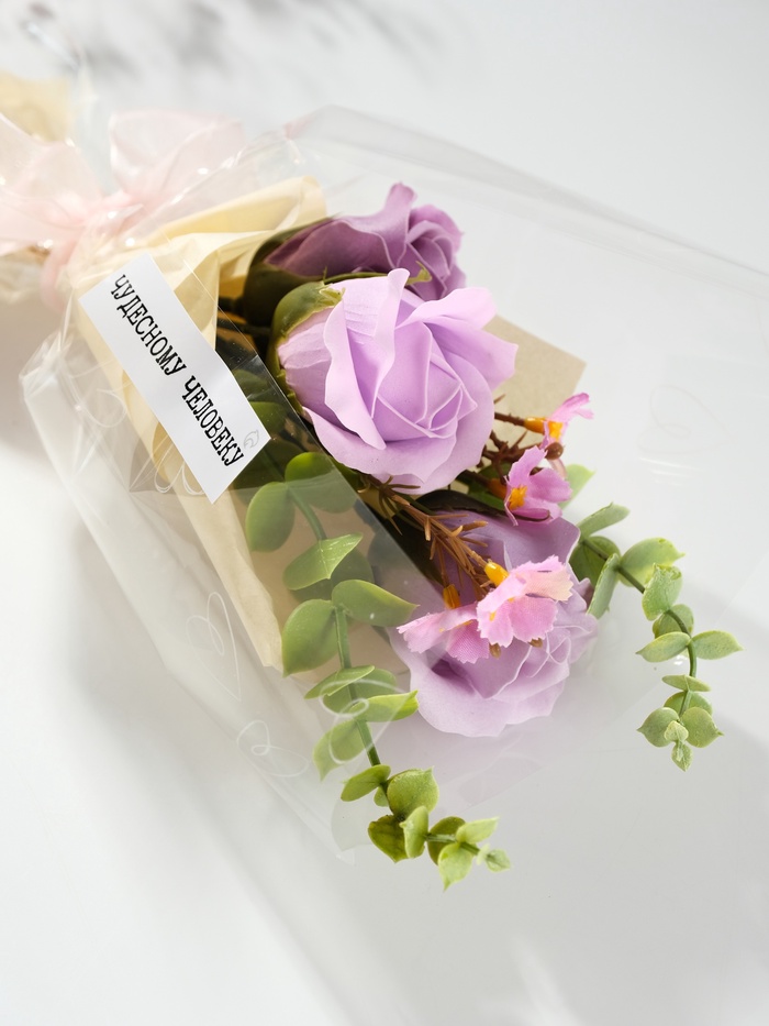 Букет из мыльных лепестков для ванны «Нежные цветы в подарок», сиреневый, 10×10×25.3 см