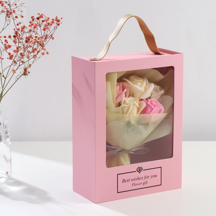 Букет из мыльных лепестков для ванны «Розы», подарочный, в коробке с ручкой, 8.5×18×25 см
