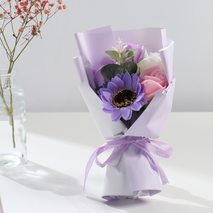 Букет из мыльных лепестков для ванны «Сиреневый туман», подарочный, 11×8×25 см