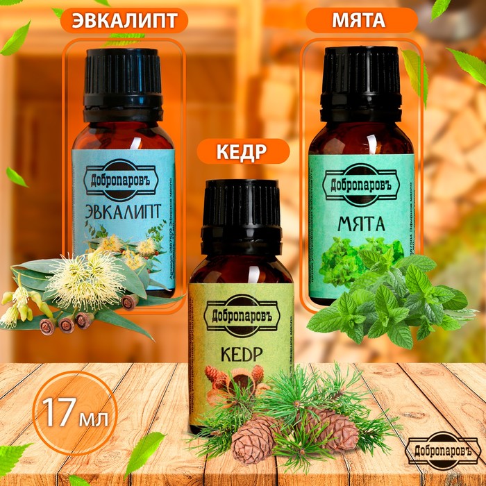 Набор эфирных масел эвкалипт, мята, кедр, «Добропаровъ», 3 шт. по 17 мл