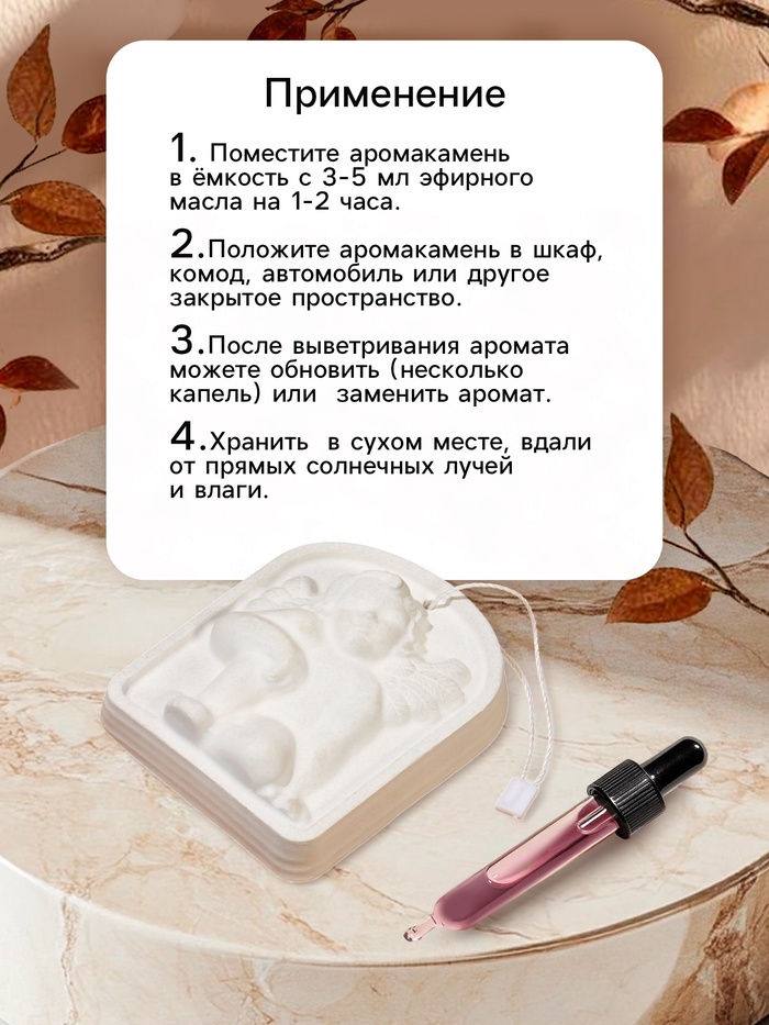 * Простота в использовании: достаточно нанести несколько капель любимого эфирного масла на поверхность, чтобы наслаждаться длительным ароматом без лишних усилий.