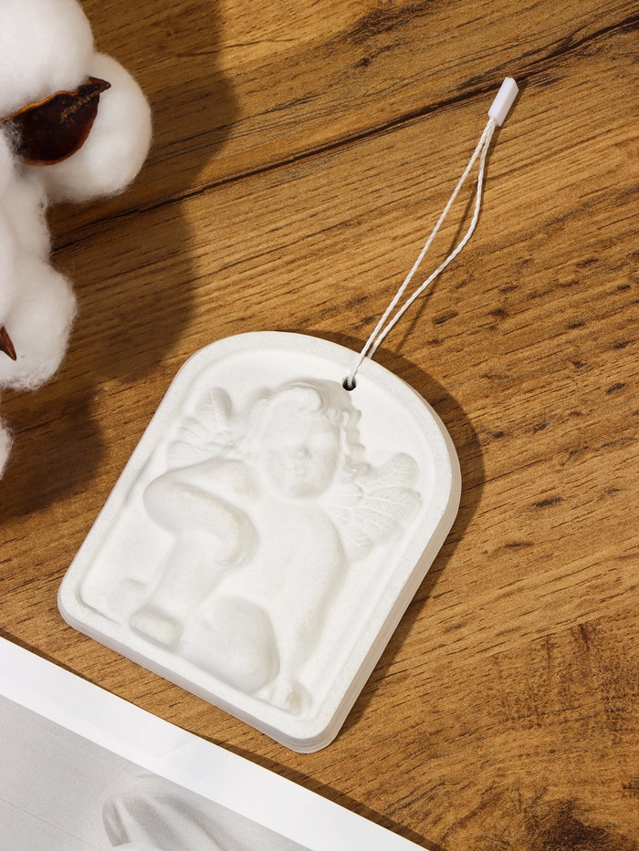 Благодаря продуманному дизайну, изделие сочетает в себе элегантную форму ангела, вырезанного на фоне нежного орнамента, с практичностью использования для диффузии эфирных масел. Его размеры (10×8 см) позволяют разместить его как в шкафах, так и на виду — он легко крепится или подвешивается, становясь центральным элементом вашего декора.