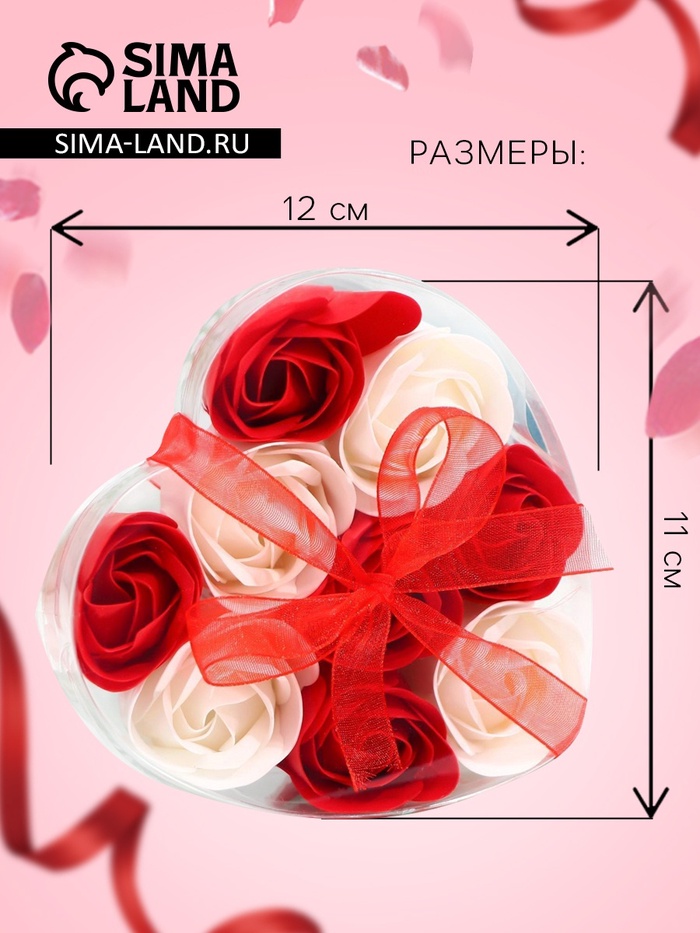 Мыльные розочки, красные и белые, набор 9 шт., в коробке
