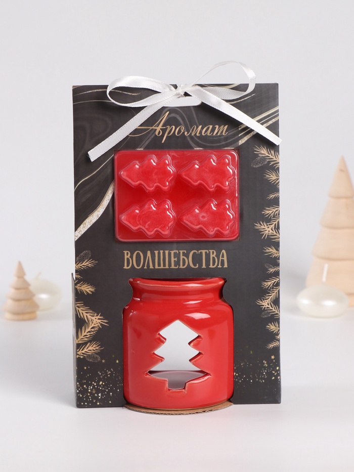 Набор: аромалампа для эфирных масел, мелтсы из воска ароматические «Ёлочка», красная, 7.5×7.5×8 см