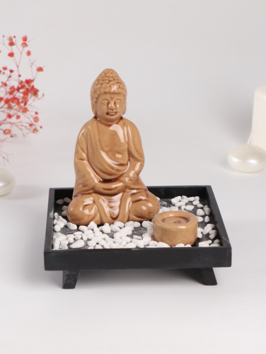 Подставка для благовоний «Будда: медитация», керамика, дерево, беж, 14×14×14.5 см