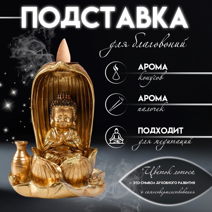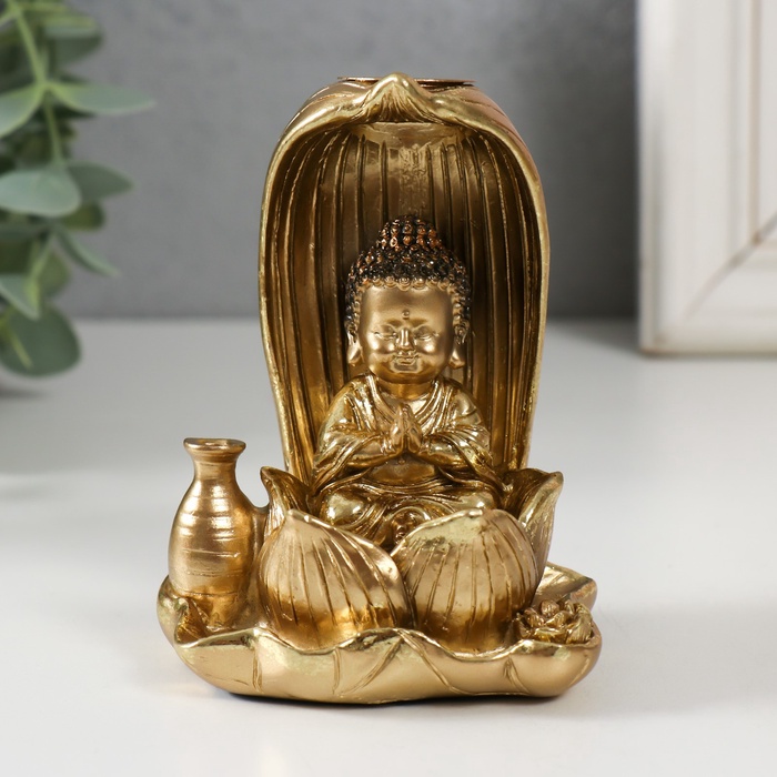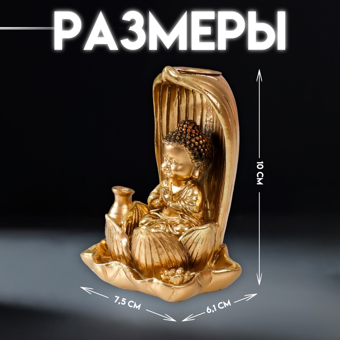 Подставка для благовоний, конусов «Маленький Будда», полистоун, золото, 6.1×7.5×10 см