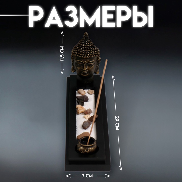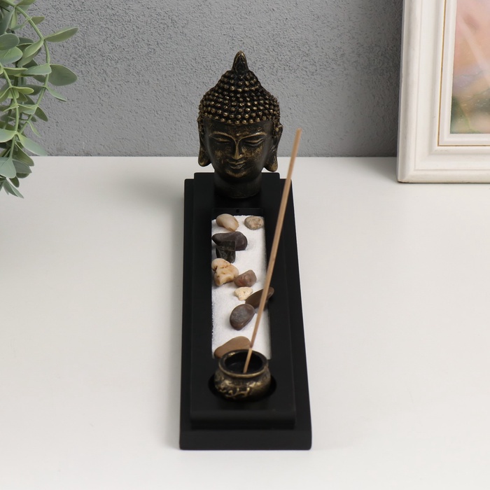 Подставка для благовоний с аромапалочками «Голова Будды», полистоун, сад камней, 29×7×11.5 см
