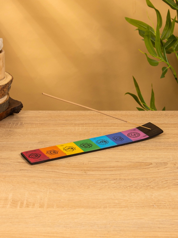 Утром или вечером, когда нужно остановиться и собраться — ставите палочку, зажигаете, и она горит ровно, не касаясь поверхности. Дерево не нагревается, не деформируется. Цвета чакр визуально напоминают о балансе — не как напоминание, а как фон, который присутствует, но не давит. Можно использовать на рабочем столе, в спальне или в зоне медитации — она не требует особого места, но добавляет смысл.