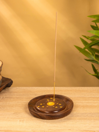 Подставка под благовония круглая «Звёзды», 12.5×12.5×2 см, дерево шишам