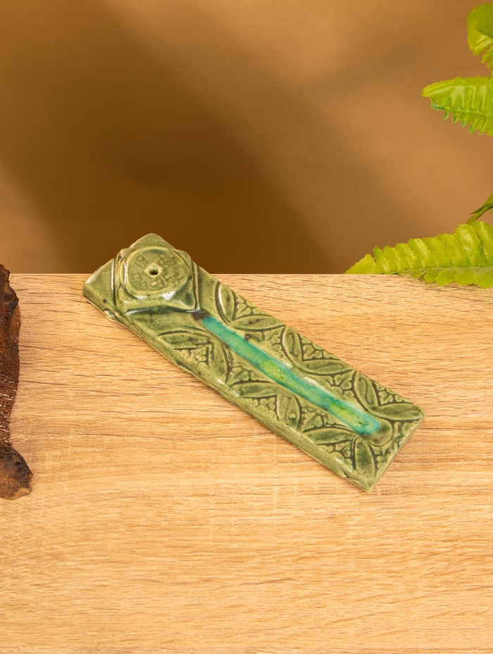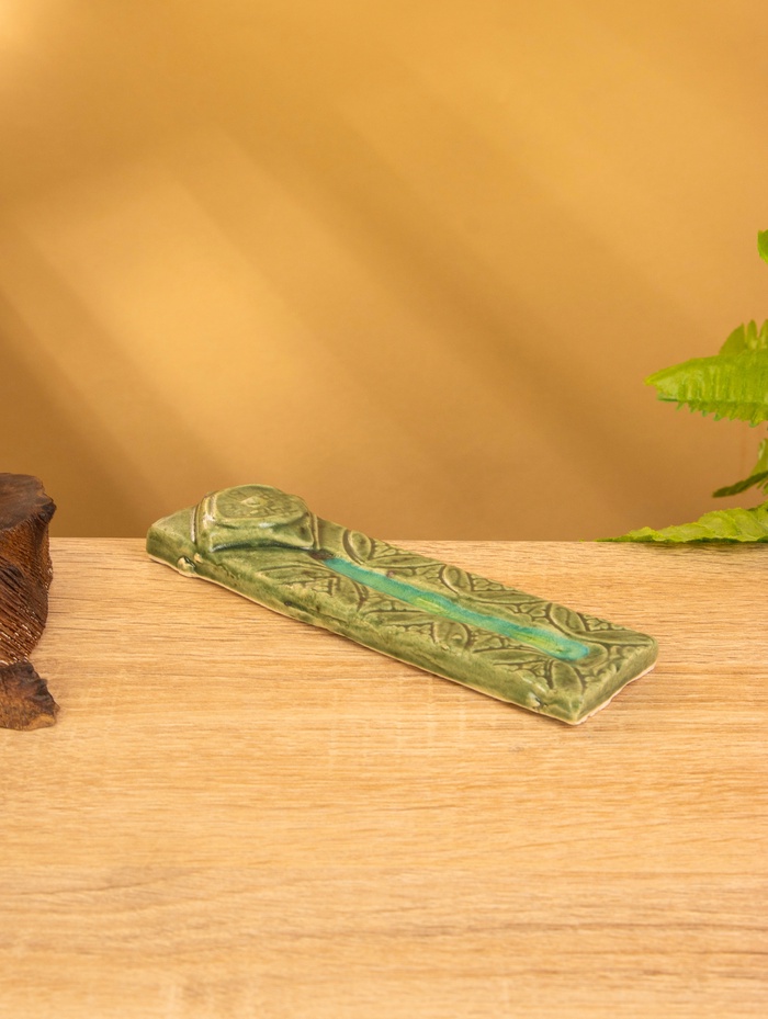 Подставка под благовония «Орнамент», 15.5×4×1 см, керамика, зелёная