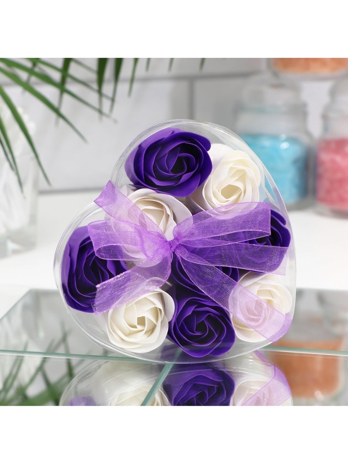 Мыльные розы, фиолетовые и белые, набор 9 шт., в коробке